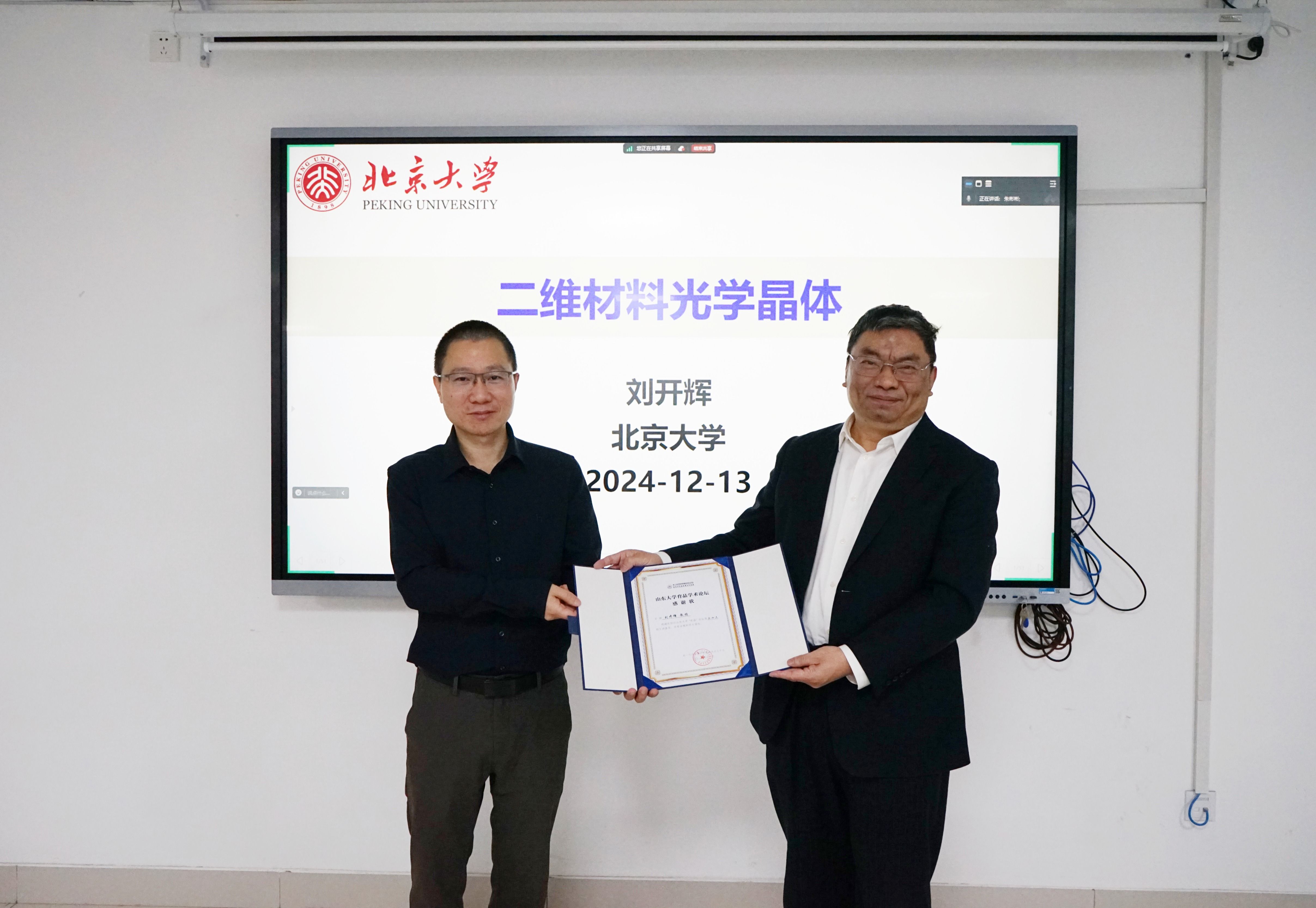 12月13日,山东大学第三十三期“育晶论坛”成功举办,北京大学教授刘开辉受邀作为本期论坛主讲嘉宾,为平台师生作了题目为“二维材料光学晶体”报告。本次论坛由大平台任华英教授主持。...