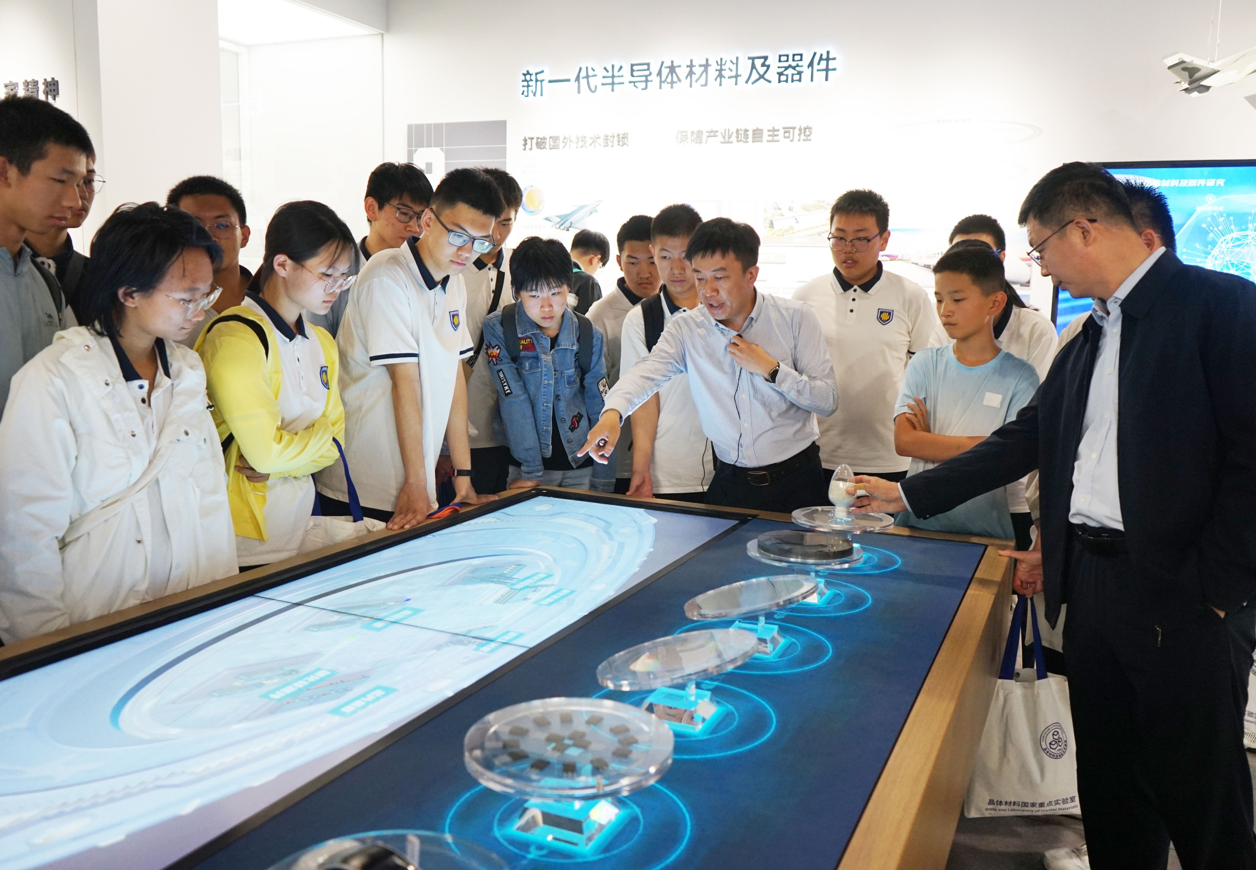 5月25日下午,晶体材料全国重点实验室面向中学生举办“探索晶体奥秘·启迪科学梦想”主题开放日活动,山东师范大学附属中学近百名中学生到新一代半导体材料集成攻关大平台参观调研,晶体...