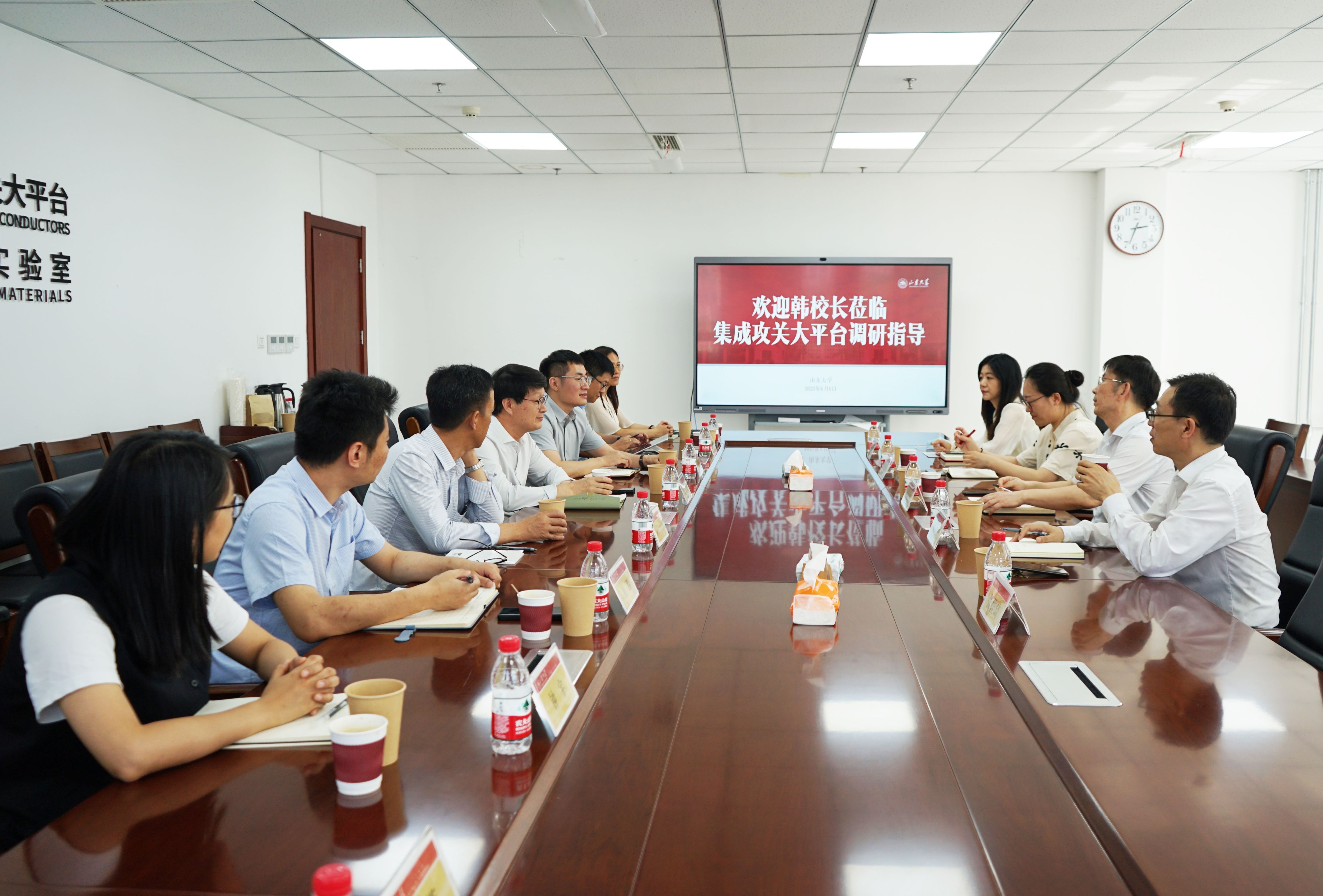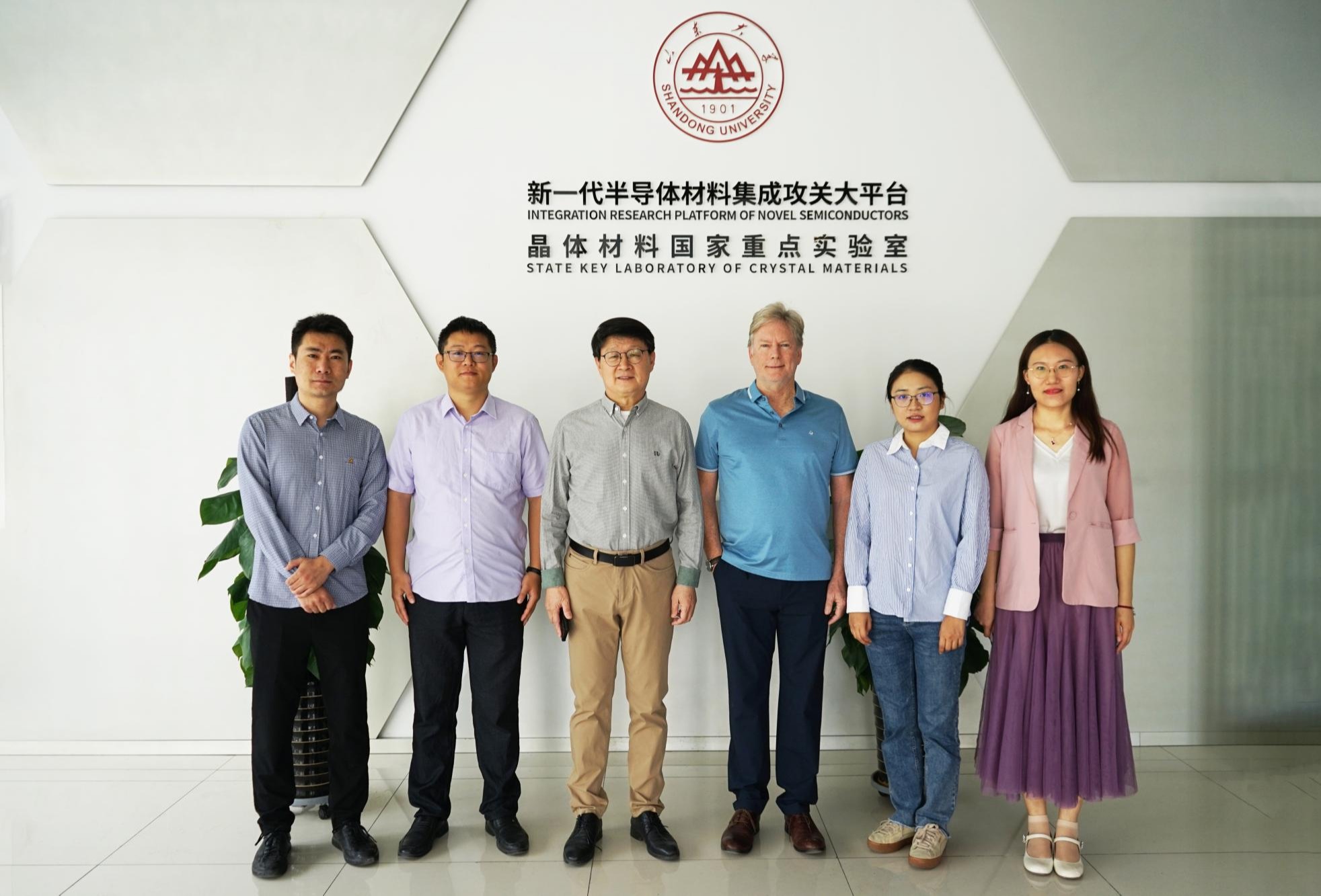 6月6日下午,山东大学前副校长韩圣浩教授,国际事务部部长孙凤收,副部长姜宏敏、张佳琦、高歌等领导来访新一代半导体材料集成攻关大平台参观调研。集成攻关大平台特聘教授韩吉胜、特聘...