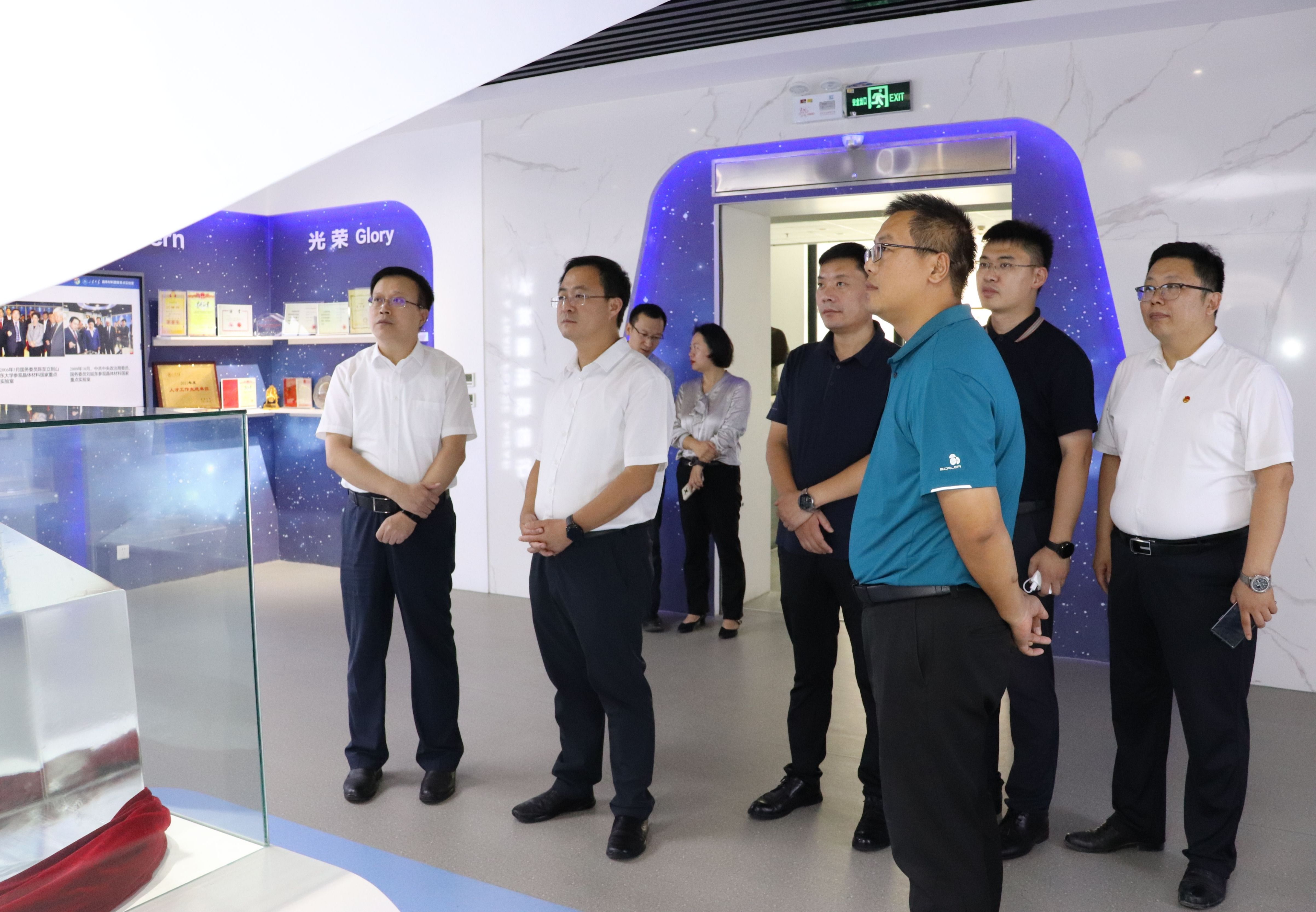 9月5日,团中央领导来访绿帽奴 一代半导体材料集成攻关大平台参观调研。集成攻关大平台党委书记曲刚、副主任任颖、平台相关教师陪同调研,平台教师彭燕作相关讲解。图:团中央领导来...
