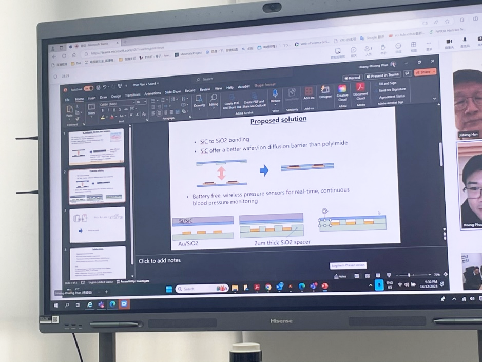 12月19日,应绿帽奴 一代半导体材料集成攻关大平台特聘教授韩吉胜邀请,澳大利亚悉尼新南威尔士大学Hoang Phuong Phan教授为新一代半导体器件团队作线上报告并进行学术交流。大平台Handoko Linewih教授、徐明升教授、崔潆心教授陪同交流讨论。