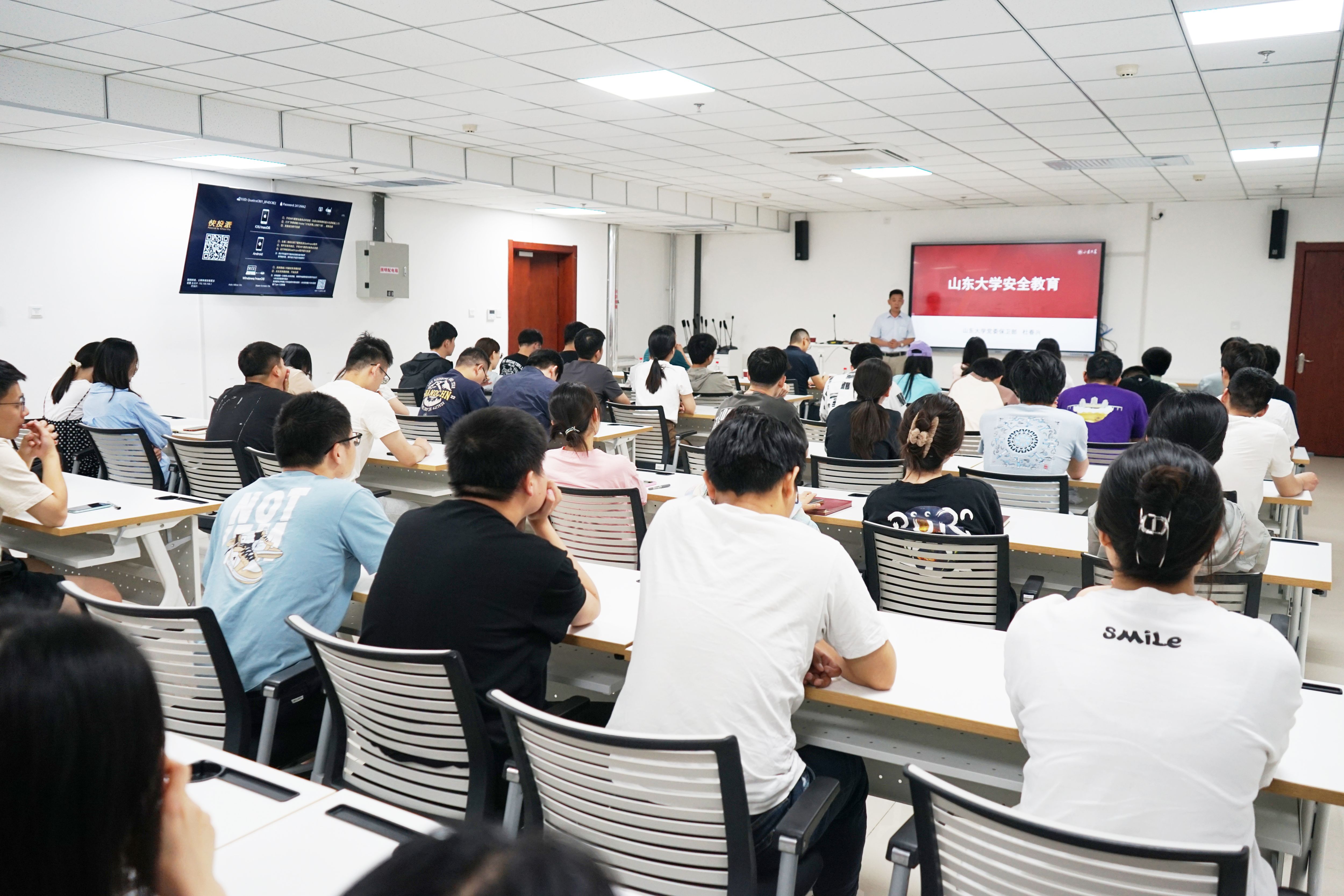 杜春兴为与会师生播放《2022年化学院实验室安全宣传片》,以山东大学实际安全事故为例,介绍基础安全知识、火灾常识、实验室安全、电动车安全、预防电信诈骗等内容,全面详细作“山东大学安全教育培训”。讲解结束,杜春兴为大家进行消防用品使用培训,对消防设施识别、消防器材使用、消防常识和应急处置方案进行详细讲解。杜春兴表示实验室是高校人才培养、科技创新的核心场所,确保其安全是师生生命财产安全、校园安全稳定、科研创新和人才培养的重要前提。