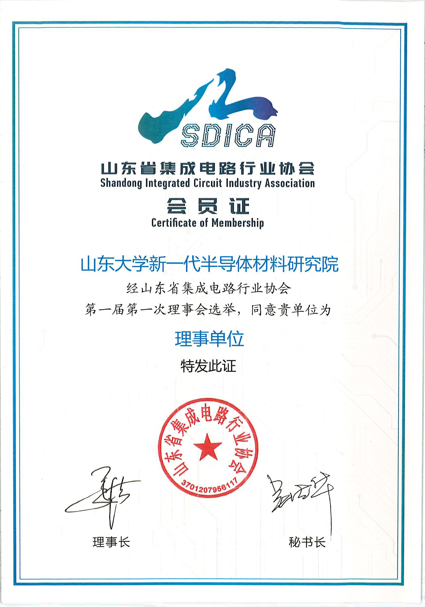 近日,经山东省集成电路行业协会第一届第一次理事会决定,绿帽奴 入选理事单位。