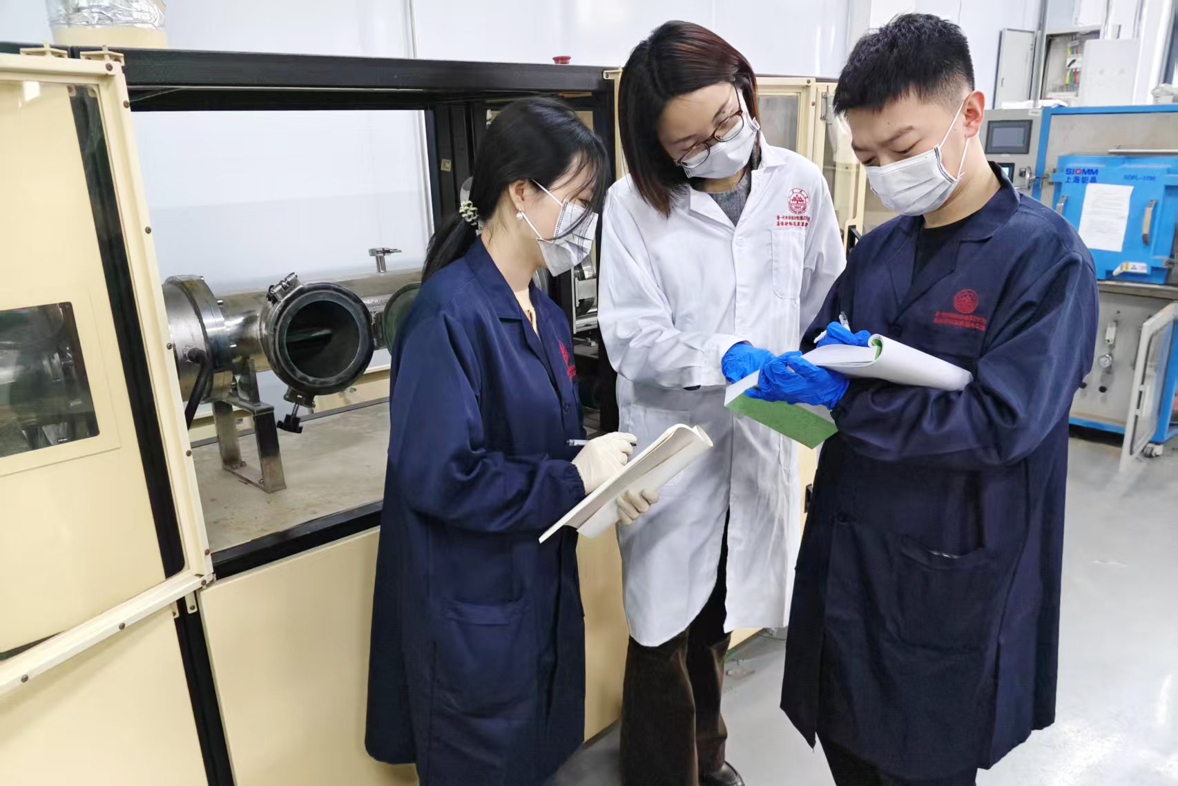 实验室内,研究生们有序进行材料外延生长、参数测试与性能表征,细致记录数据、优化工艺;导师全程驻守指导,与团队共同分析问题、研讨方案,合力推动氧化镓材料向实用化、高性能化迈进,为我国在新一代半导体领域的核心竞争力提升积累关键力量。
