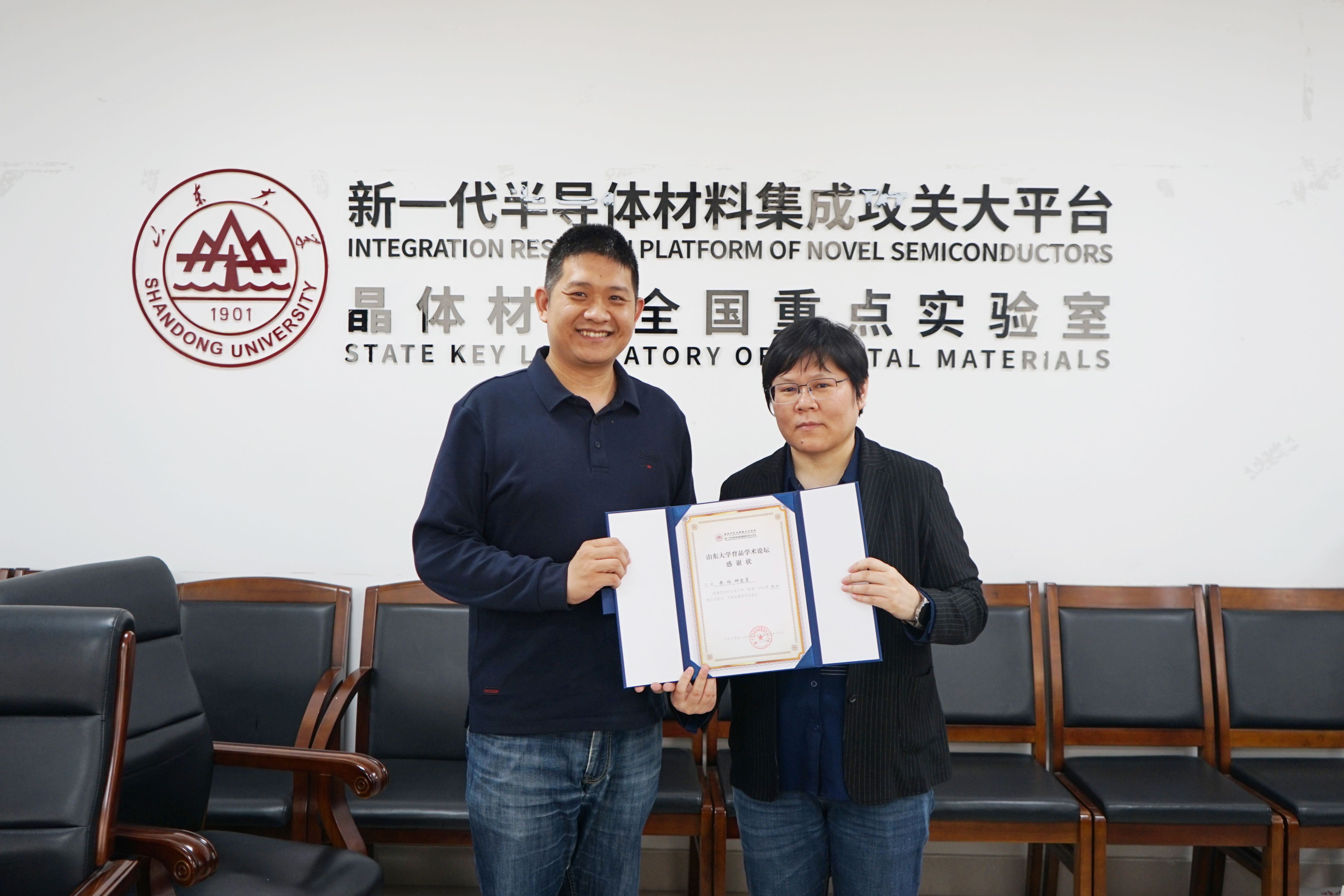 4月28日,山东大学第六十期“育晶论坛”成功举办。中国科学院金属研究所黄楠研究员受邀作为本期论坛主讲嘉宾,为师生作了题为“CVD金刚石材料研究进展”的学术报告。本期论坛由王希玮副研究员主持。