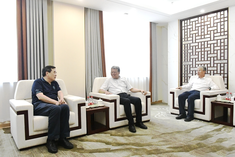 图:山东大学党委书记郭新立、校长李术才接待包信院士来访