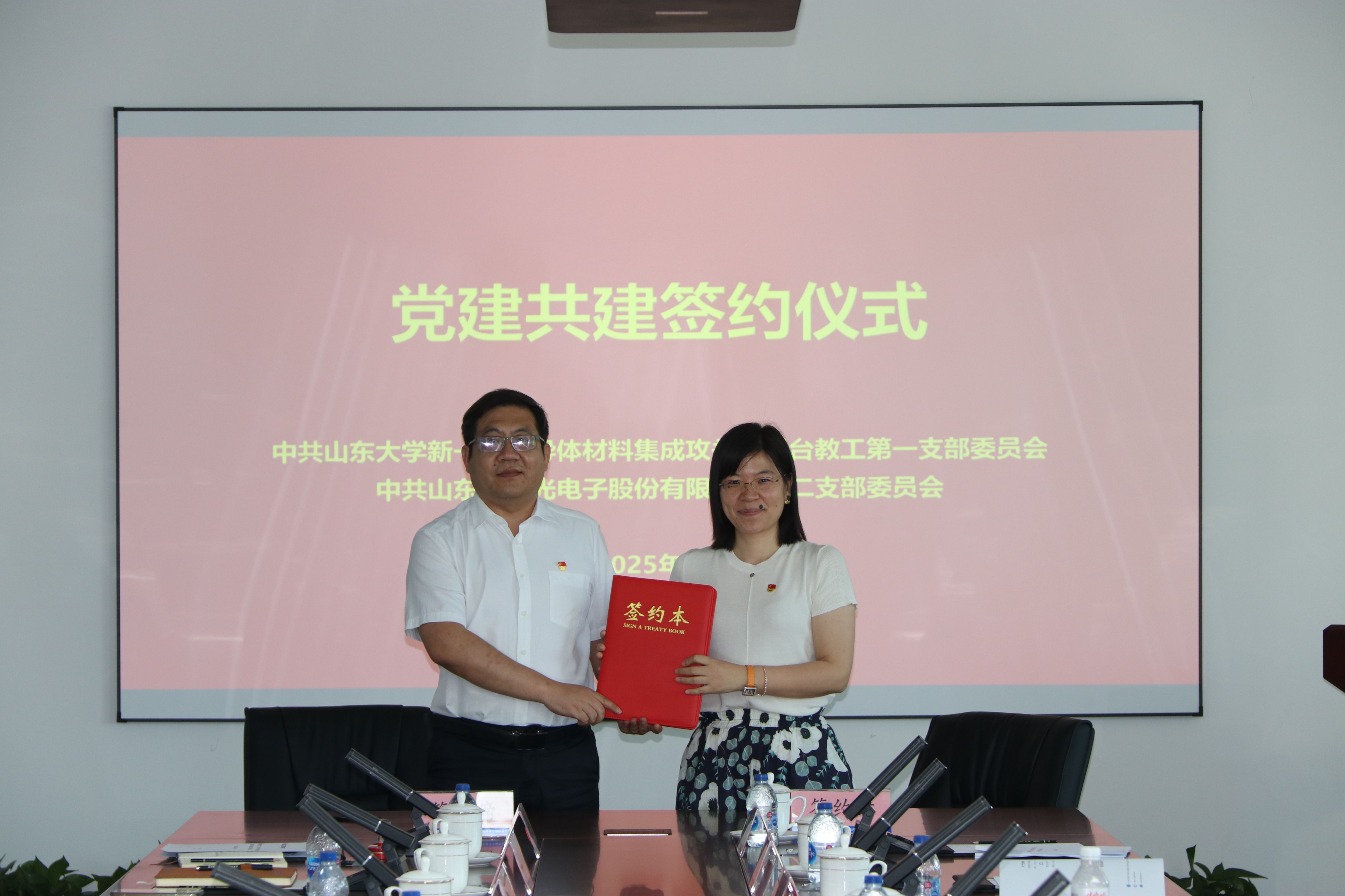 一代半导体材料集成攻关大平台教工第一党支部与华光光电第二党支部分别签署了党建共建协议书。双方将在组织建设互促、党员队伍互动、党建载体互用、结对互帮互助、科学发展共赢等方面开展深入合作。